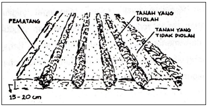 If we in Pula. Java and Bali stout rice plants grown in a mountainous area with bench terraces form a pretty good because it created contour. Processing of the ground like this quite well in the context of the prevention of erosion. But in the area of Puncak, Bogor, Dieng and various other areas there is still a ground processing that follows the slope, especially in areas of planted vegetables. How tillage like this is very detrimental to soil conservation.