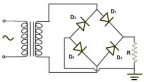 Full wave rectifier circuit with bridge system is the most widely used as a power source of aircraft electronics. This bridge rectifier system requires four diodes. The transformer used do not need to have a flashlight tap.