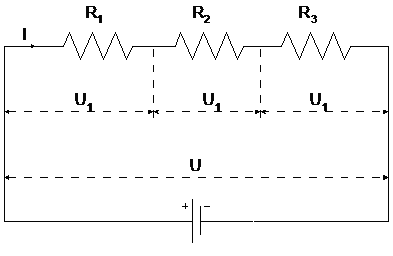 Jika tiga resistor dihubungkan seperti gambar di bawah ini maka disebut sebagai hubungan atau rangkaian seri resistor.