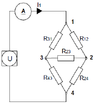 1. Prepare an experimental project like the picture below! The equipment required is as follows: (1) a voltage source or power supply U = 10 VDC – 12 VDC, (2) ampermeter DC with measuring limit of 100 mA – 300mA, (3) four resistors ceramic each R12, R23, R31 and R43 = 200-300 ohms. Determine the current value I1 in the calculations and compare it with the measurement results.