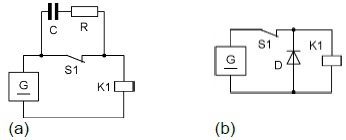 When the switch is open (Figure 1.125a) then in a very short time current flows in the RC circuit, will thus draw current high so that the induced voltage will be obviated.