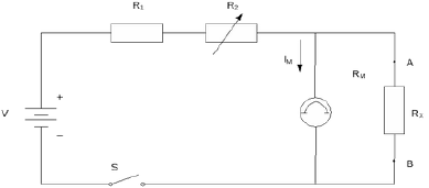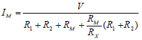 Kedudukan R2 jangan diubah lagi sehingga selalu terpenuhi persamaan Imaks di atas dengan demikian akan diperoleh bahwa skala dengan RX = tak terhingga terletak di sebelah kanan. Untuk RX = nol atau A-B dihubungsingkatkan maka tidak ada arus melalui M atau . Jadi skala nol ohm terletak di sebelah kiri. Apakah perbedaan dengan ohmmeter seri ?