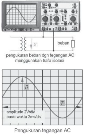 Trafo digunakan untuk mengisolasi antara listrikyang diukur dengan listrik pada osiloskop. Jika menggunakan listrik PLN maka frekuensinya50 Hz.