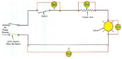 Gambar 8.2 Koneksi Ohmmeter untuk mengukur Resistan