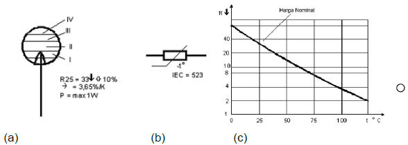 Perlu dicatat bahwa skala resistansi adalah dalam logaritmik dan resistansinya berubah mulai dari beberapa ratus ohm pada temperatur 75oC dan beberapa ratus kilo ohm pada temperatur 150oC.