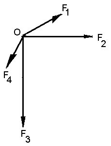 Buatlah gambar komponen gaya yang terdiri atas empat gaya yang mempunyai arah berlainan dengan titik tangkap sama seperti pada gambar berikut , Panjang garis disesuaikan dengan skala gayanya .