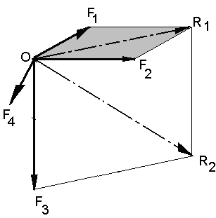 Gambar 2.20 Menjumlah gaya F1 +F2 + F3 = R2 atau R1 + F3 = R2