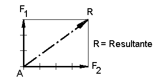 Dua buah gaya masing masing F1 = 30 Ndan F2 = 40 N dengan titik tangkap sama di titik A, kedua gaya tersebut mempunyai arah yang berlainan yaitu F1 ke atas tegak lurus F2 yang mempunyai arah kekanan mendatar, lukiskan kedua gaya tersebut dan tentukan jumlah gayanya.