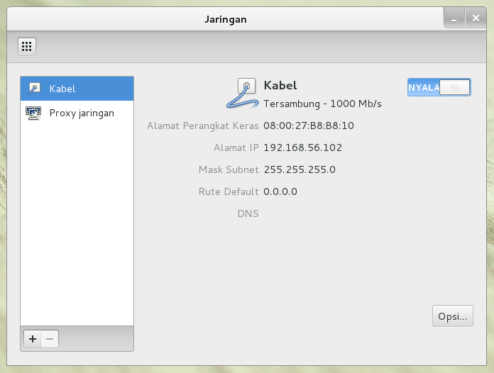 – Mengelola jaringan kabel, seperti memilih jenis pengalamatan apakah menggunakan DHCP ataupun manual.
