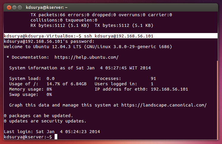 In addition to the above example, the following merupkan display computer terminal server accessed via ssh client application.