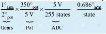 255 (1111 1111bin). The potentiometer rotates 350 ° but the robotic arm only rotates 120 ° so the gear ratio is 2: 1. With this setting the potentiometer rotates 240 ° when the robot arm rotates 120 °