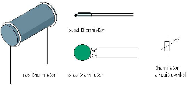 Thermistor made of a mixture of metal oxides deposited such as manganese (Mn), nickel (Ni), cobalt (Co), copper (Cu), iron (Fe) and uranium (U). Summary prisoner is from 0.5 W to 75 W and are available in various shapes and sizes. The smallest size mani-shaped beads (beads) with a diameter of 0.15 mm to 1.25 mm, the shape of the disk (disk) or the ring (washer) with a size of 2.5 mm to 25 mm. The rings can be pinned and placed in series or in parallel in order to increase the power dissipation.