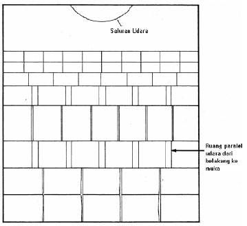 Pola ini menyediakan saluran untuk sirkulasi udara menurut panjangnya muatan dan memberikan kesempatan untuk setiap boks kontak secara langsung dengan udara pendingin.