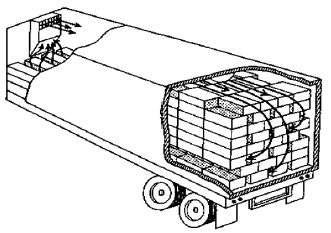 Untuk mengurangi peningkatan suhu yang terjadi di dalam bak truk pengangkut yang ditutup terpal, saat memuat buah dan menutupnya dengan kain terpal harus dimungkinkan adanya aliran udara dari depan ke belakang yang berguna untuk membuang panas (Anonim 2011). Rancangan truk tanpa pendingin yang dilengkapi dengan ‘penangkap angin’ dan saluran udara yang disusun dari peti-peti kayu memungkinkan terciptanya aliran udara dari depan ke bagian belakang sehingga dapat menghindari peningkatan suhu, selanjutnya kemasan buah diatur agar tercipta aliran udara tersebut.