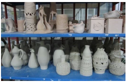 a. Siapkan benda-benda keramik yang telah dikeringkan (greenware) dan kelompokkan menurut ukuran tingginya pada rak dorong.