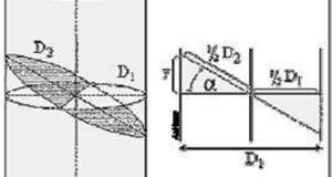 a) Bentuk fisik mistar biltmore Bentuk fisik mistar biltmore berupa mistar yang diberi tongkat penyangga setinggi dada (1,30 m) dan mempunyai skala (satuan ukur). Skala mistar biltmore pada awalnya berupa selang diameter, kini telah diubah ke dalam satuan ukur. Satuan ukur yang digunakan adalah cm dengan satuan ukur terkecil dalam mm. b) Dasar Kerja Perhatikan Gambar 40 di bawah ini. ...